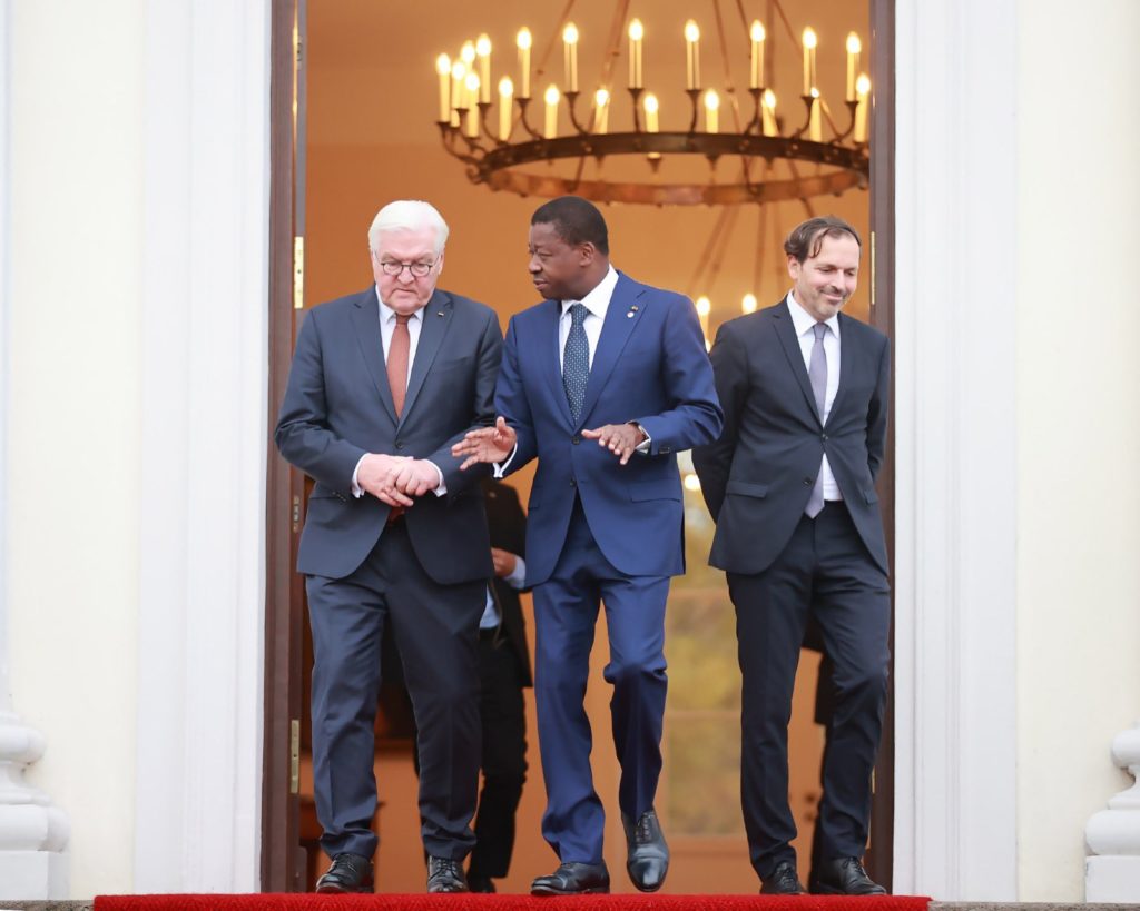 En séjour dans la capitale allemande où il a pris part au 4ème sommet du G20 Compact with Africa (G20-CwA 2023), le Président de la République, Faure Essozimna Gnassingbé a été convié lundi 20 novembre à un banquet officiel offert en son honneur par son homologue, Frank-Walter Steinmeier, au château de Bellevue, siège de la présidence allemande.