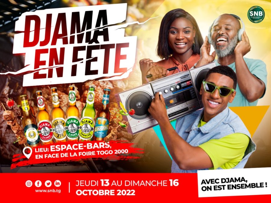 Après le lancement officiel de sa nouvelle bière « C’KOOL, ÇA COULE », sur le marché togolais, la Société Nouvelle de Boissons (SNB) reste attachée à sa clientèle de tous les jours. Ainsi, avec tous ses produits Djama, elle annonce une autre folle ambiance qui va s’étendre sur quatre jours à Lomé. Le rendez-vous est donné pour ce jeudi 13 octobre au dimanche 16 octobre 2022 à l’espace-bars, en face de la Foire Togo 2000.