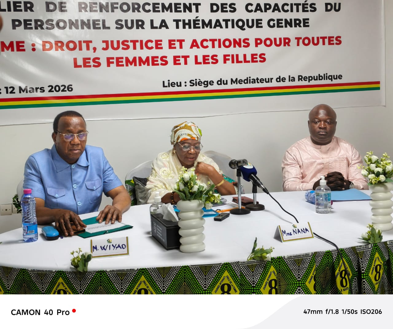 Le Médiateur de la République, Protecteur du Citoyen et Présidente du Haut-Commissariat à la Réconciliation et au Renforcement de l’Unité Nationale (HCRRUN), Awa Nana-Daboya, a lancé une initiative importante pour renforcer les capacités des personnels des deux institutions sur les questions liées au genre. L’atelier, qui a démarré le jeudi 12 mars 2026, vise à intégrer la dimension genre dans les actions et interventions des personnels.