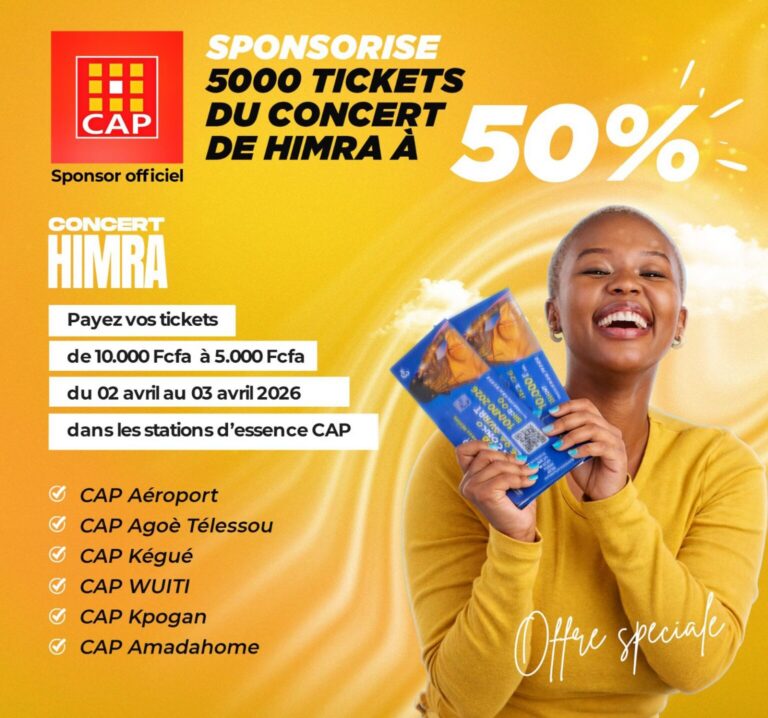 La musique ivoirienne à l’honneur à Lomé ! L’artiste Himra débarque dans la capitale togolaise pour un concert exceptionnel et CAP Togo, sponsor officiel de l’événement, vous offre une réduction de 50% sur les tickets grand public.