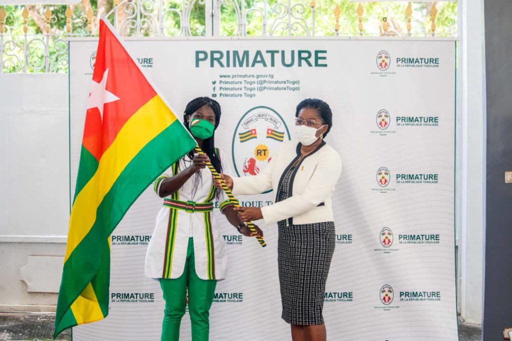»Je voudrais, au nom du Chef de l’État, vous féliciter pour ces brillants parcours exceptionnels qui font honneur à notre pays. À travers cette remise de drapeau, la nation toute entière vous fait confiance, elle vous envoie en mission. Vous avez reçu ce drapeau, ça veut dire que vous acceptez d’être les dignes ambassadeurs de la nation togolaise à cette compétition de Tokyo. », a-t-elle indiqué.