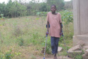 Grâce à la générosité de KWA France, la prothèse a déjà été confectionnée dans l’atelier de Daniel Eza, à Akato, dans la périphérie nord-ouest de Lomé. Marilyne Cottin s’est rendue à Lili Copé pour remettre à Djato des béquilles adaptées, en attendant que la prothèse soit prête.