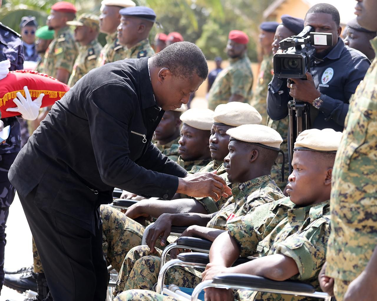 Présidée par le Président du Conseil, Faure Essozimna GNASSINGBE, Chef Suprême des Armées, cette cérémonie a été l’occasion de saluer la bravoure des militaires qui ont donné leur vie pour la patrie. Le Chef d’Etat-Major Général des Forces Armées Togolaises, le Général de Brigade Dimini Allaharé, a décerné la Croix de vaillance avec étoile en bronze aux militaires blessés et aux auteurs d’actes de courage. Cet acte de reconnaissance nationale vise à honorer le sacrifice suprême des militaires qui ont donné leur vie pour la défense de la Nation togolaise.