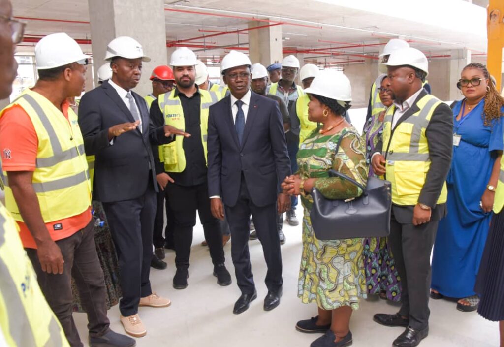 Très impressionné par cet état d’avancement, malgré le retard, le ministre Sani Yaya ensemble avec ses collaborateurs, ont fait quand même le point avec l’entreprise Porteo qui est très engagée et qui de par ses efforts, malgré le financement bancaire qui n’est pas encore décaissé a mis ses fonds propres, pour pouvoir avancer jusqu’à ce niveau. Un tour du batiment a été effectué par la délegation qui a profité de l’occasion pour identifier les points d’attention qui permettront aux travailleurs de donner un coup d’accélérateur au chantier. Notons que parmi ces points d’attention, le ministre a fait savoir qu’il y a des travaux supplémentaires qui se feront par rapport à la sécurité, à l’augmenjtation du nombre de boutiques et autres. Et que l’instruction est donnée à l’entreprise exécutante pour accélérer les travaux et au besoin, les faire jour et nuit.