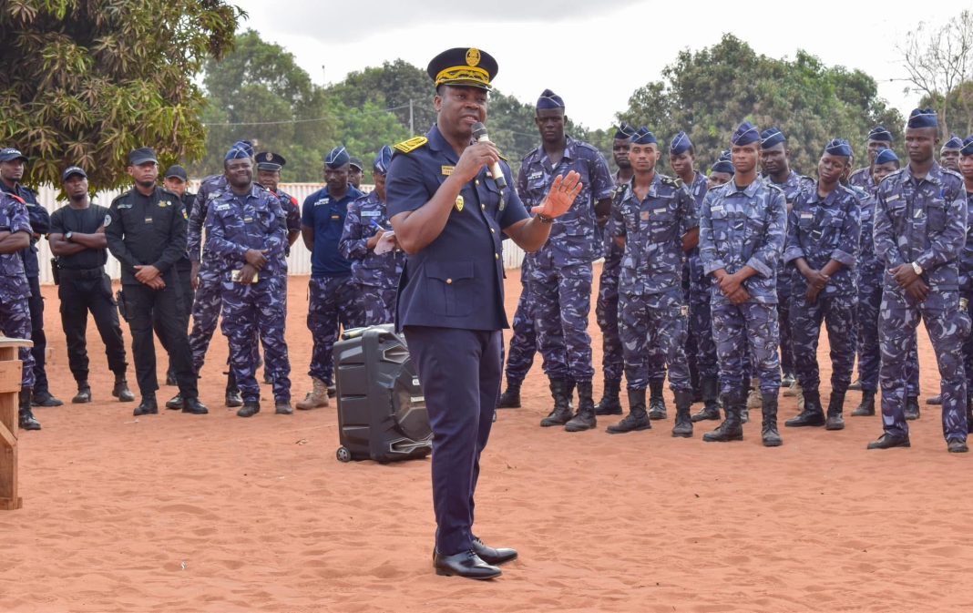 En visite sur le terrain, le directeur général de la Police nationale, Akatao Babarime, accompagné du directeur central de la Sécurité Publique ( DCSP), du Directeur des Affaires Communes ( DAC) et de l’inspecteur Général de la Police Nationale ( IGPN), ils leurs ont rappelé quelques règles professionnelles.