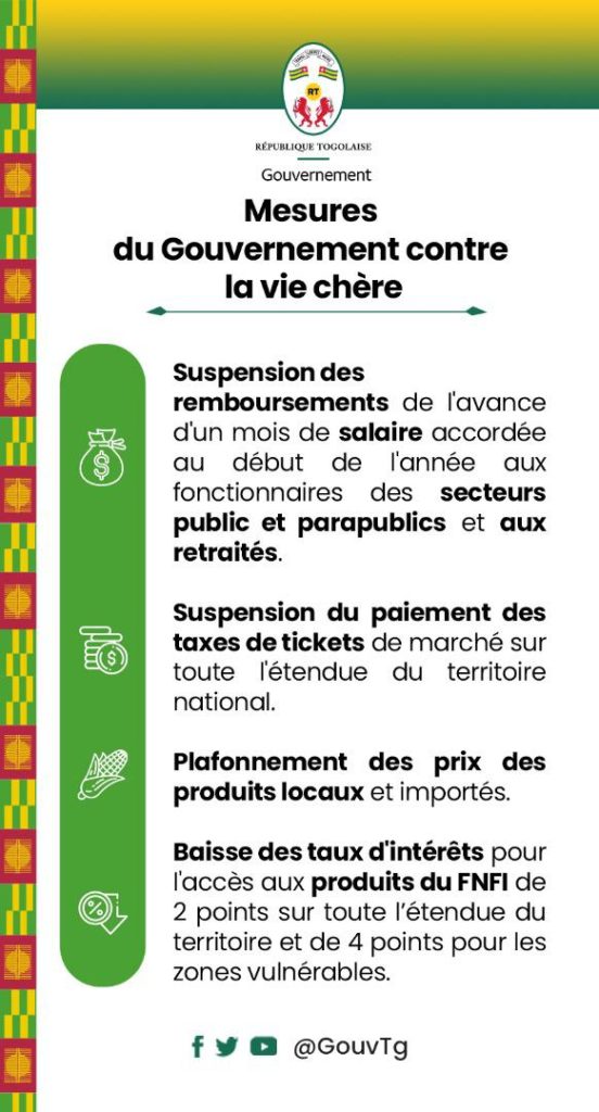 « Le paiement des taxes de tickets est suspendu dans tous les marché sur toute l’étendue du territoire national » c’est l’une des mesures annoncée par le Chef de l’Etat Faure Gnassingbé dans son adresse à la nation ce mercredi 27 avril 2022, jour d’Indépendance du Togo.