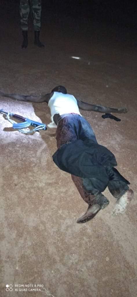Avant l’heure de leur forfaiture, les deux malfrats se sont logés à l’auberge la Tranquillité de Cinkassé en vue de passer à l’opération au moment opportun. Informés de leur présence d’autant plus qu’ils faisaient l’objet d’une recherche par les gendarmes, le Commandant de la compagnie et ses éléments, appuyés par les forces de défense sur place, ont fait irruption dans l’auberge vers 22 heures juste au moment où ces malfrats surpris ont ouvert le feu sur les gendarmes pour se frayer le passage et déguerpir. Les gendarmes ont riposté en tuant l’un des brigands. Ils ont récupéré un fusil kalachnikov AK47 avec un chargeur garni de 30 cartouches de 7,62 mm, un pistolet automatique (PA) avec un chargeur garni de 03 cartouches de 9mm.