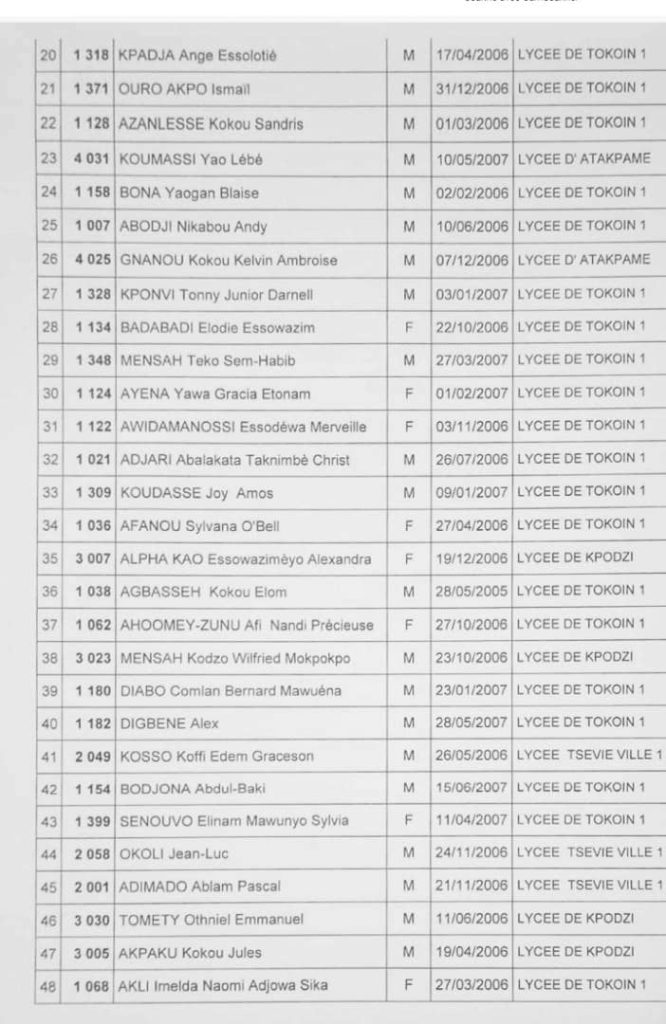Le gouvernement a publié ce 15 septembre la liste des élèves candidats retenus pour l’entrée dans les écoles scientifiques de Kara et de Lomé.