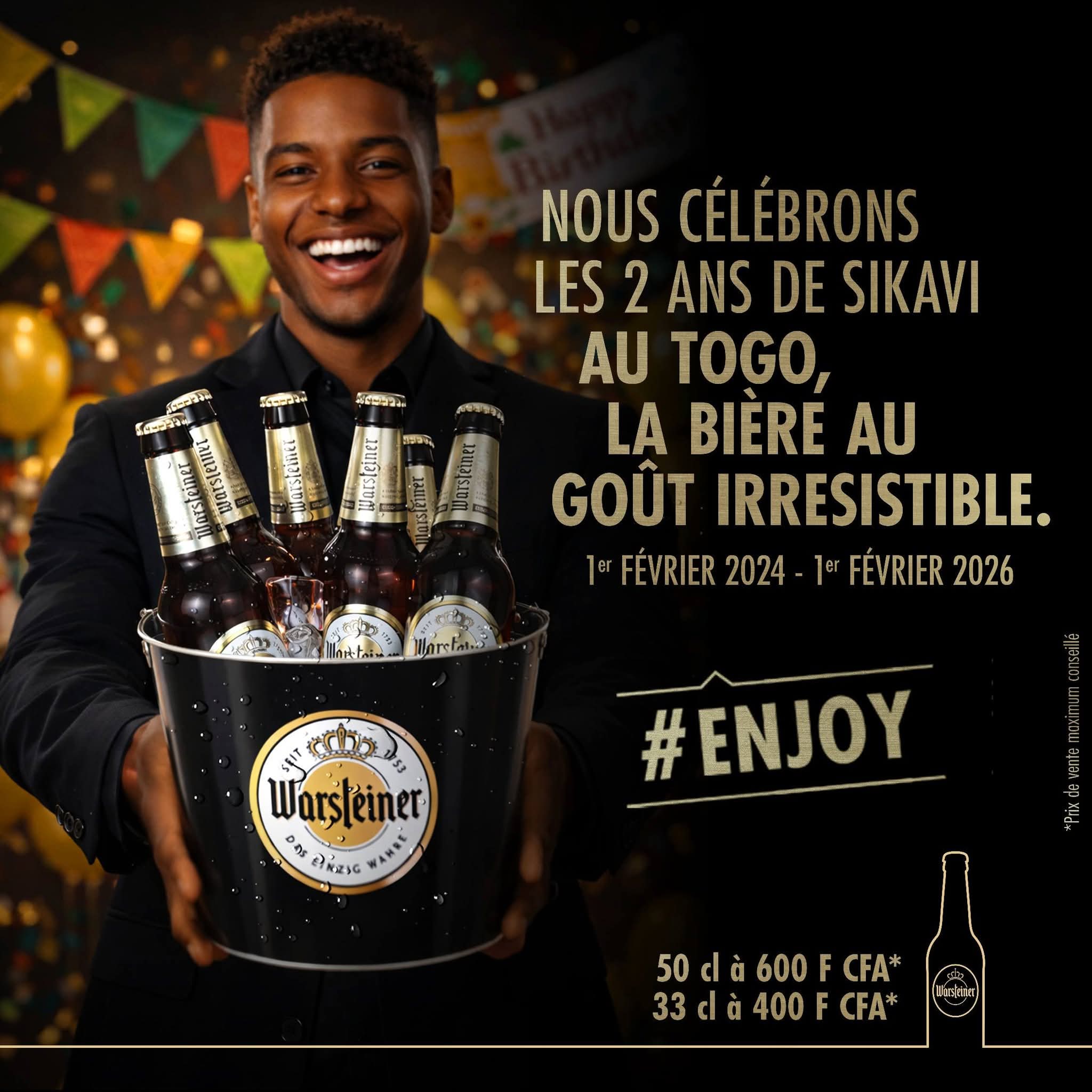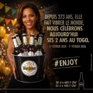 La Société Nouvelle de Brasseries (SNB) célèbre les 2 ans de présence de Sikavi ou Warsteiner, la bière au goût irrésistible, au Togo. Depuis le 1er février 2024, Sikavi a conquis le cœur des Togolais avec son goût unique et sa qualité exceptionnelle.